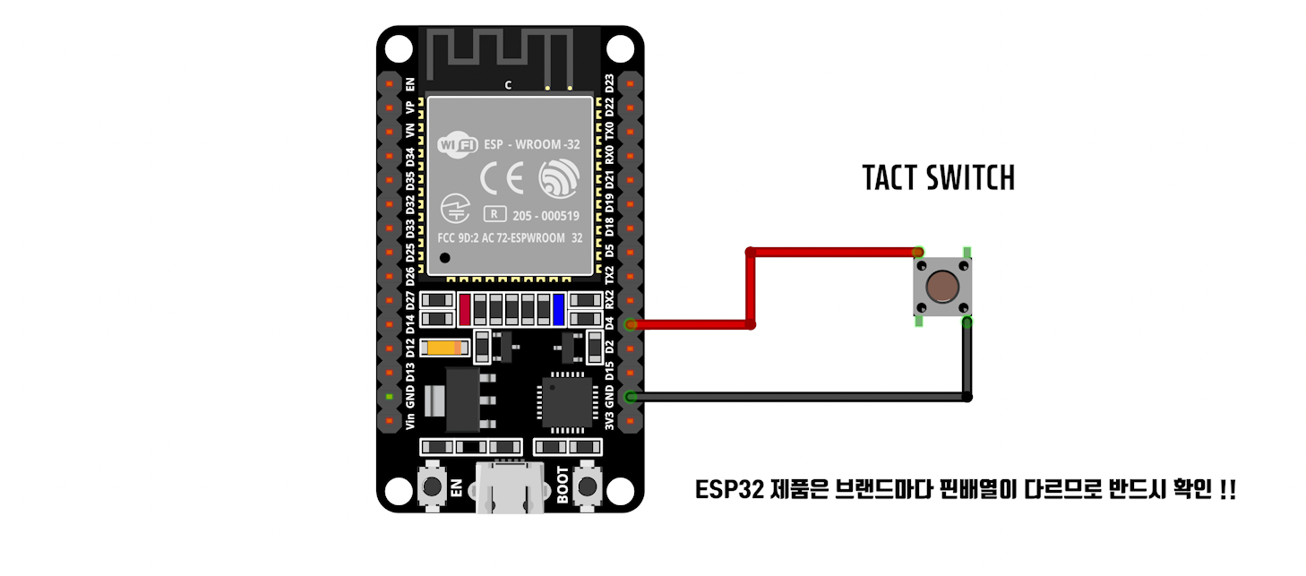 ESP-WROOM-32의 내부 LED는 GPIO 2번핀에 연결되어 있다.