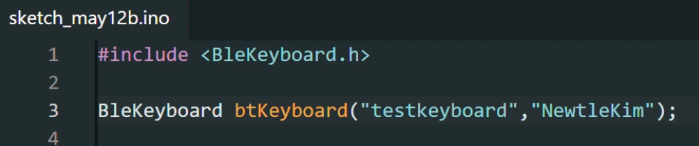 BleKeyboard bleKeyboard("MyKeyboard"); // 키보드 이름