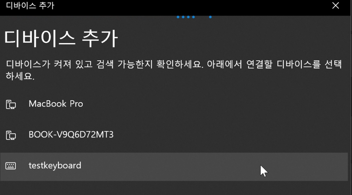 이처럼 디바이스 이름이 ESP32 Keyboard 에서 testkeyboard로 변경된 것을 확인할 수 있었다.